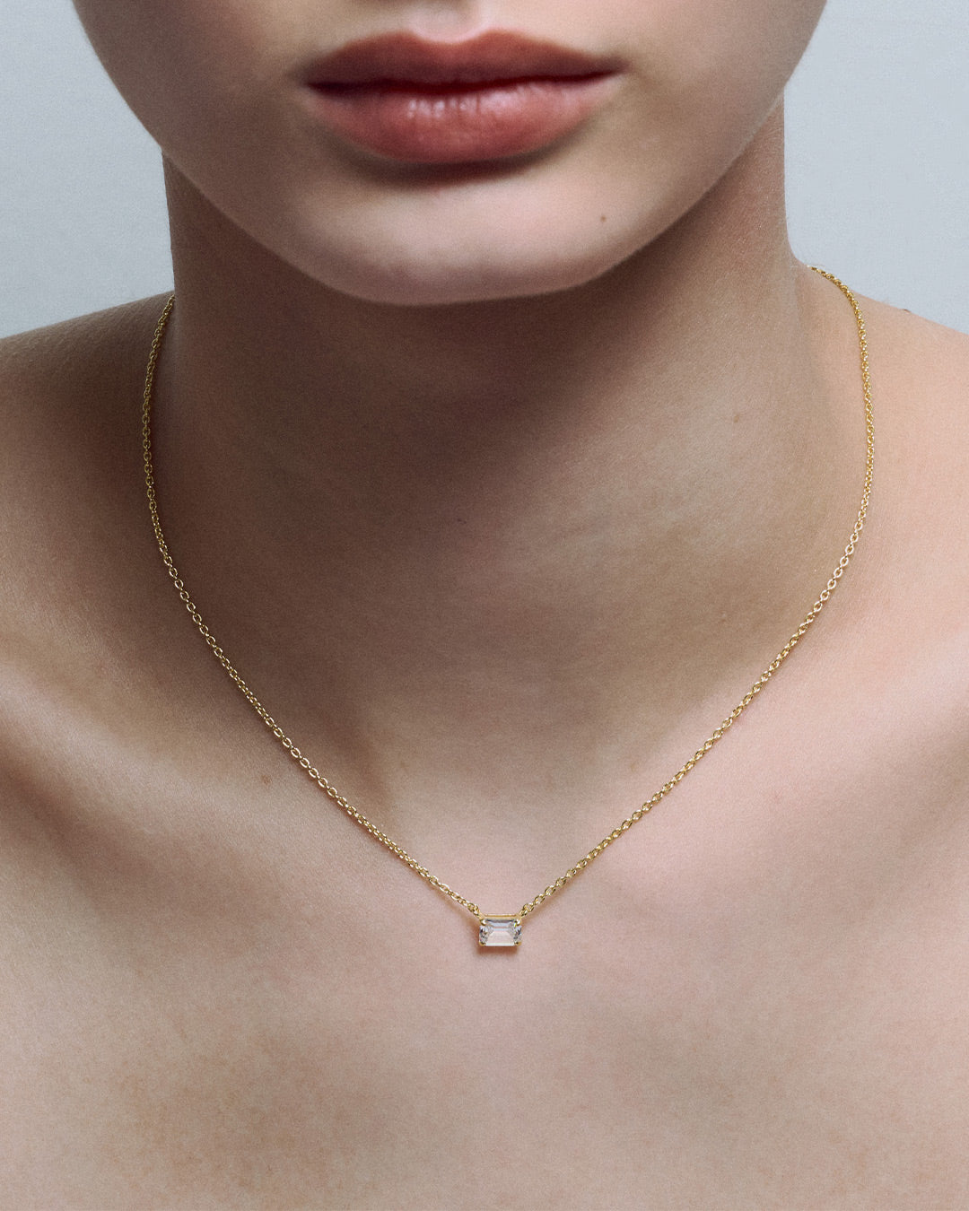 Emerald Chain Necklace in 925 sterling silver is a minimalist and elegant necklace, adorned with an emerald-cut cubic zirconia stone. The necklace features an adjustable chain.