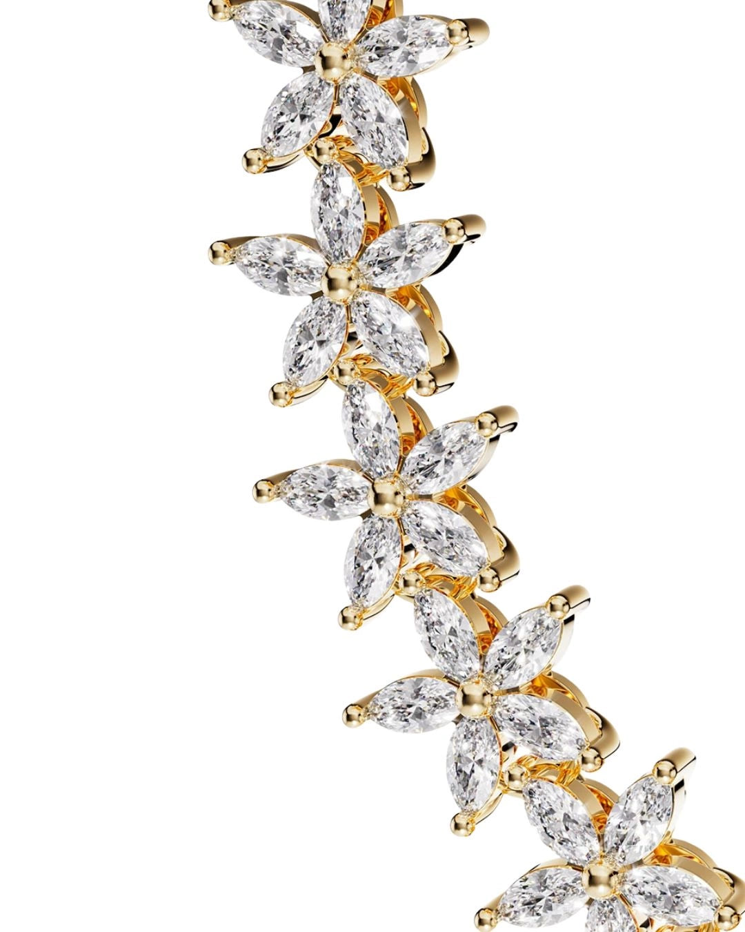 This elegant tennis bracelet is meticulously decorated with a series of small, enchanting flowers that run around the entire bracelet, each flower sparkling with fine stones. The Flower Tennis Bracelet is a must-have in every jewelry box, perfect to wear on its own for minimalist elegance or combined with other jewelry for a more expressive look.