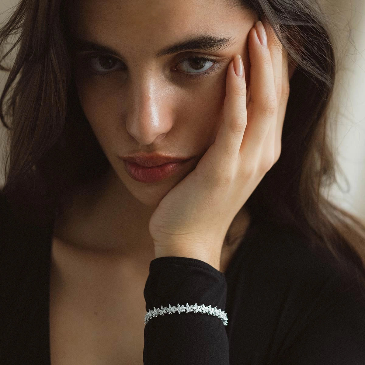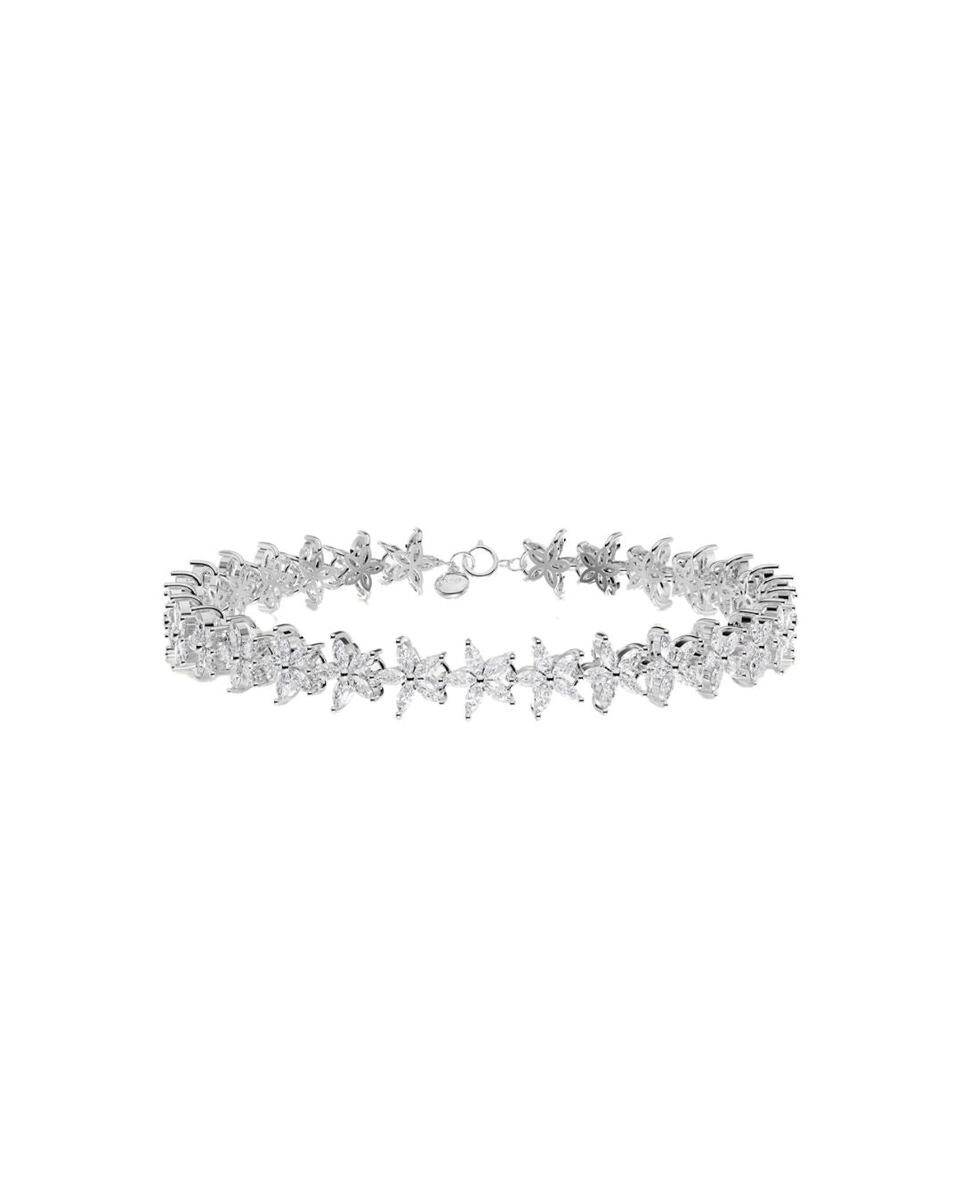 This elegant tennis bracelet is meticulously decorated with a series of small, enchanting flowers that run around the entire bracelet, each flower sparkling with fine stones. The Flower Tennis Bracelet is a must-have in every jewelry box, perfect to wear on its own for minimalist elegance or combined with other jewelry for a more expressive look.