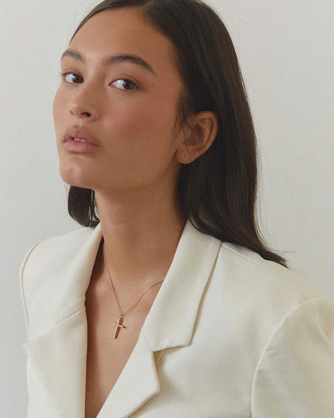 An elegant pendant with sparkling stone details. Perfect to pair with our Thin Chain Necklace for a sleek and refined look.