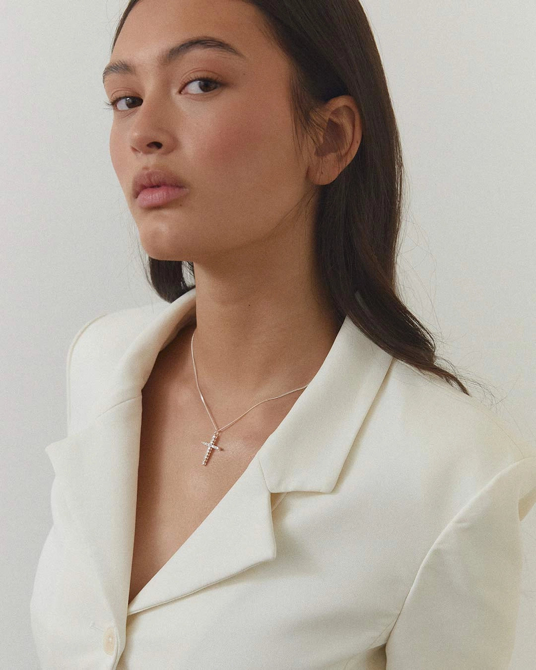 An elegant pendant with sparkling stone details. Perfect to pair with our Thin Chain Necklace for a sleek and refined look.