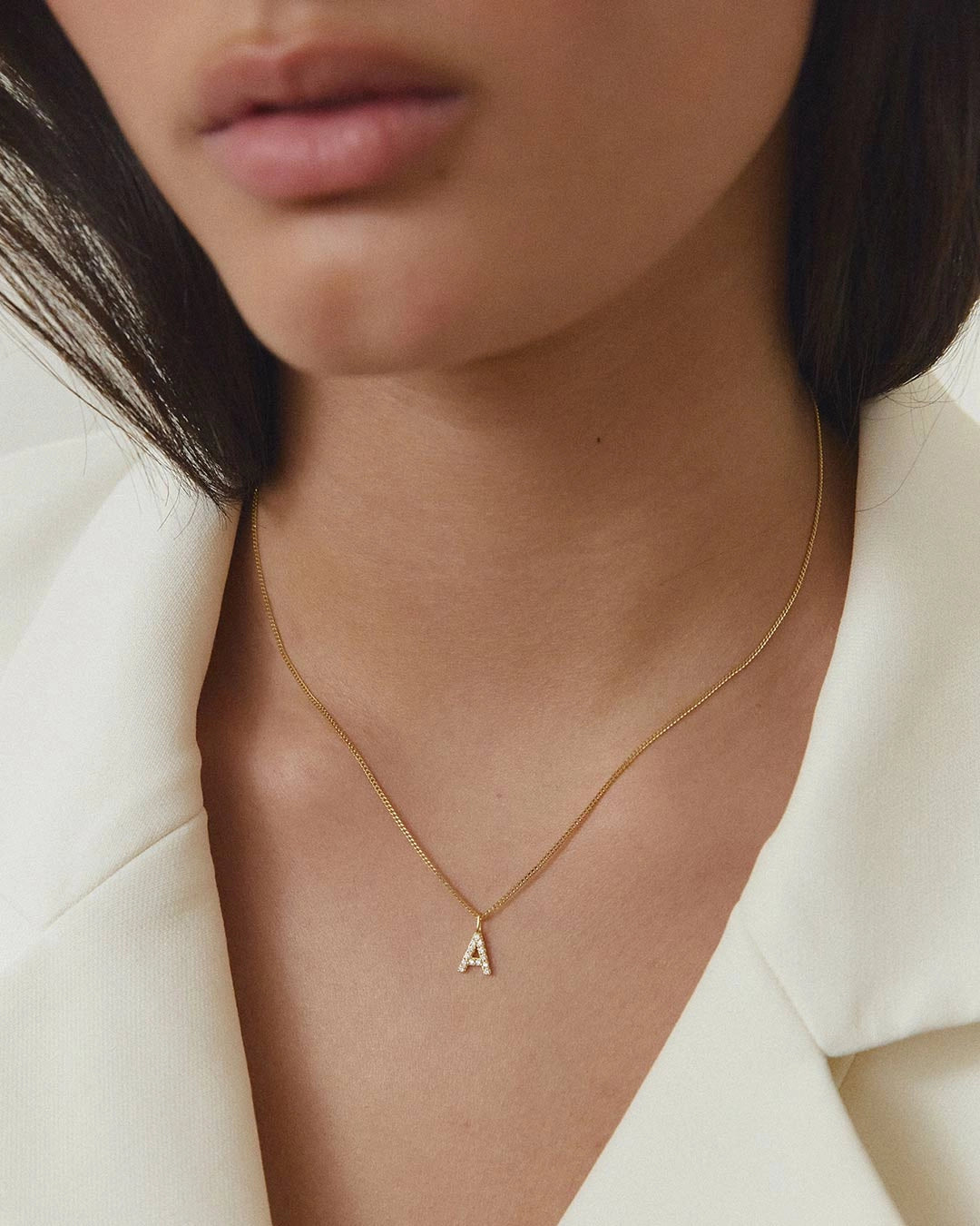 Silver plated letter charms, decorated with white cubic zirconia stones. Wear multiple letters together to create a personal look that reflects your style. Please note that these only work with Thin Chain 42 cm and Thin Chain 52 cm. Comes without chain.