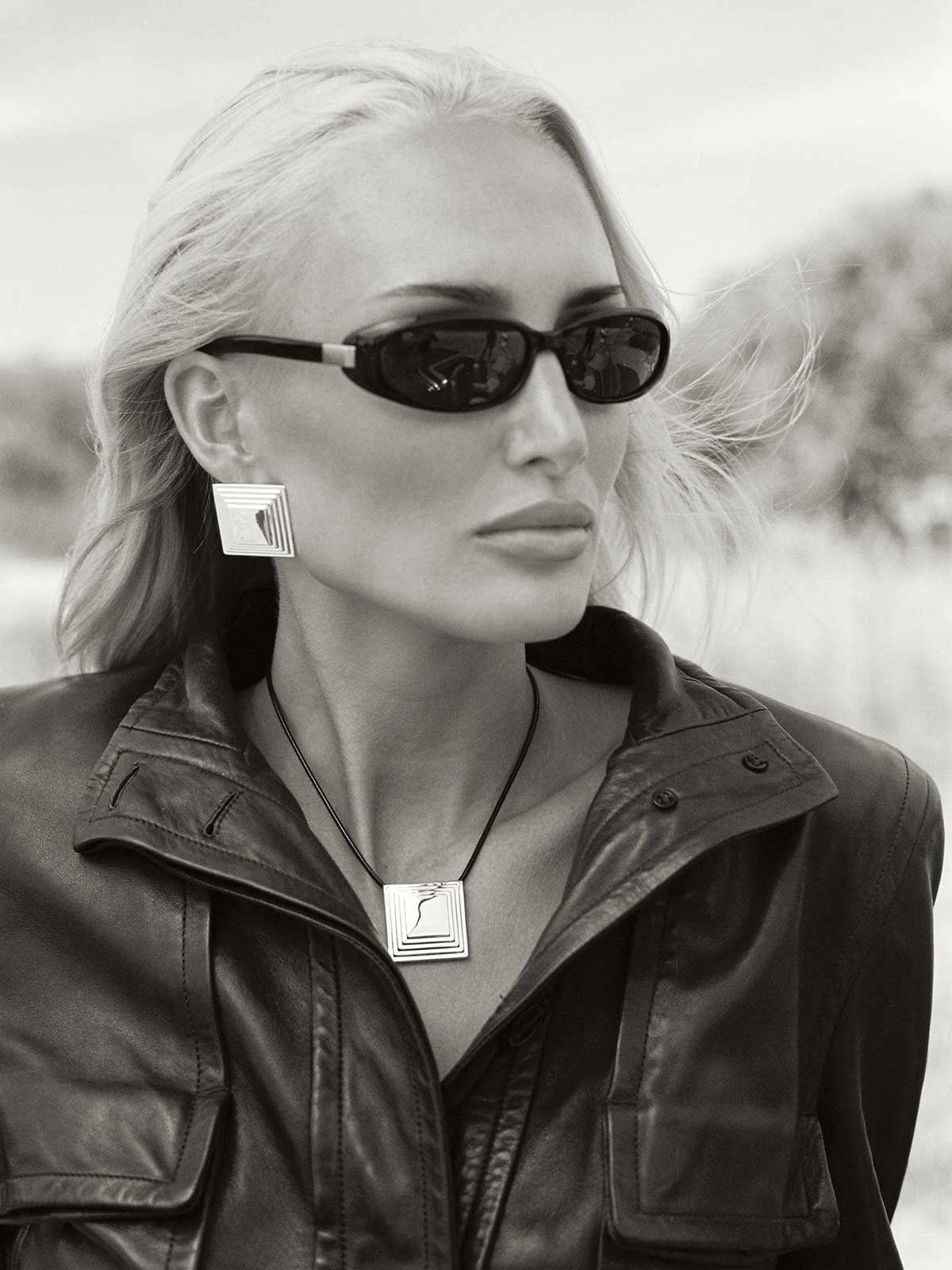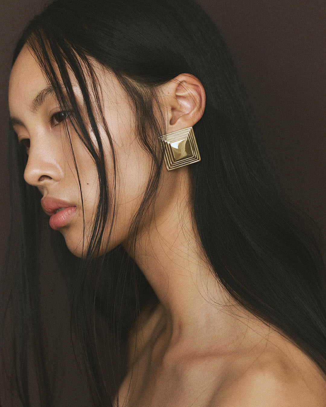 The Pyra Earrings are a pair of stylish, large earrings with a beautiful, textured square shape, available in both gold and silver. These earrings are perfect for adding a unique and elegant touch to your look.
