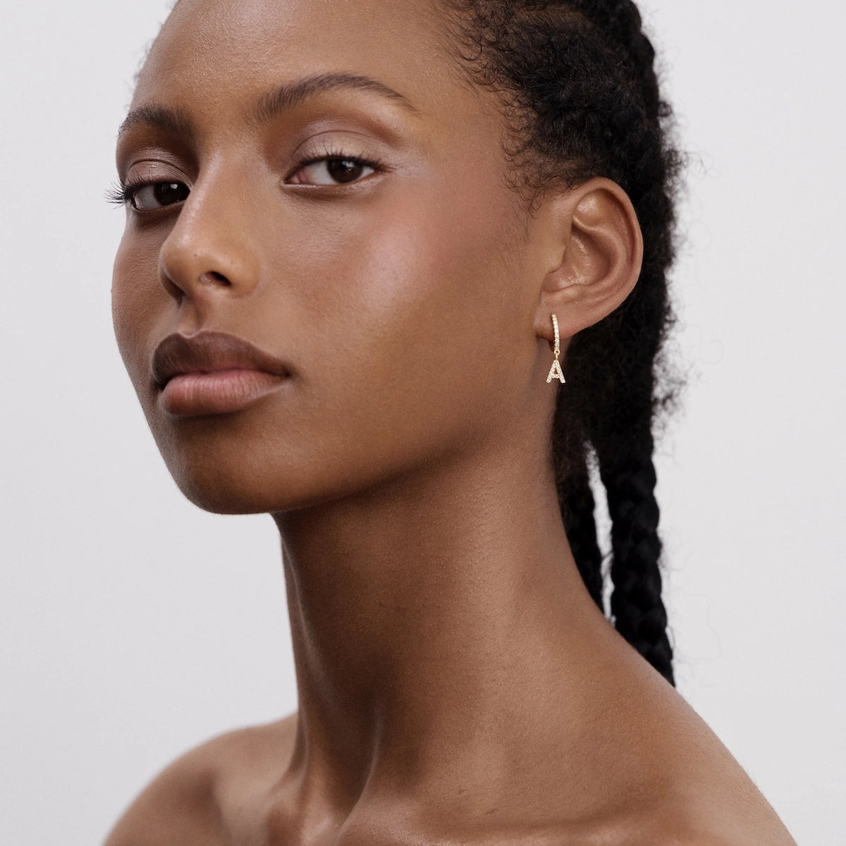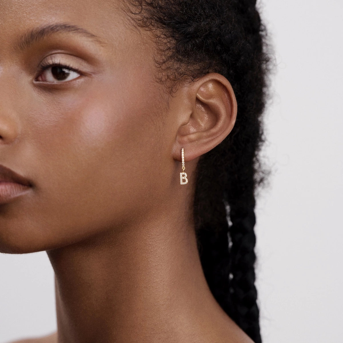 A chic earring adorned with white stones, complemented by a letter pendant that is embellished with stones. Choose your letter and create a meaningful look, available in gold and silver. Delivered in a stylish box, it can be worn solo or with other jewelry for an exclusive feel. Sold individually (not as a pair).
