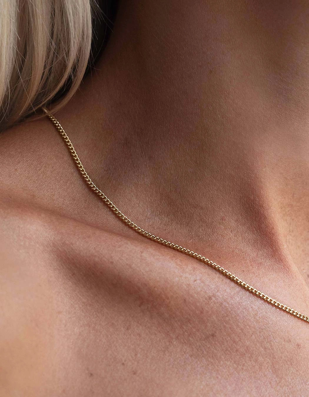 A delicate and flat chain that fits our pendants. The chain is 42 cm long with a 5 cm extension for easy adjustment. Note: Not compatible with our charms.
