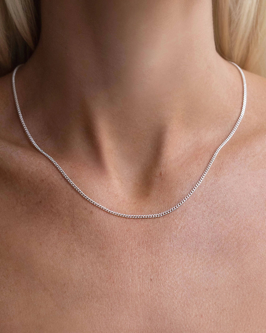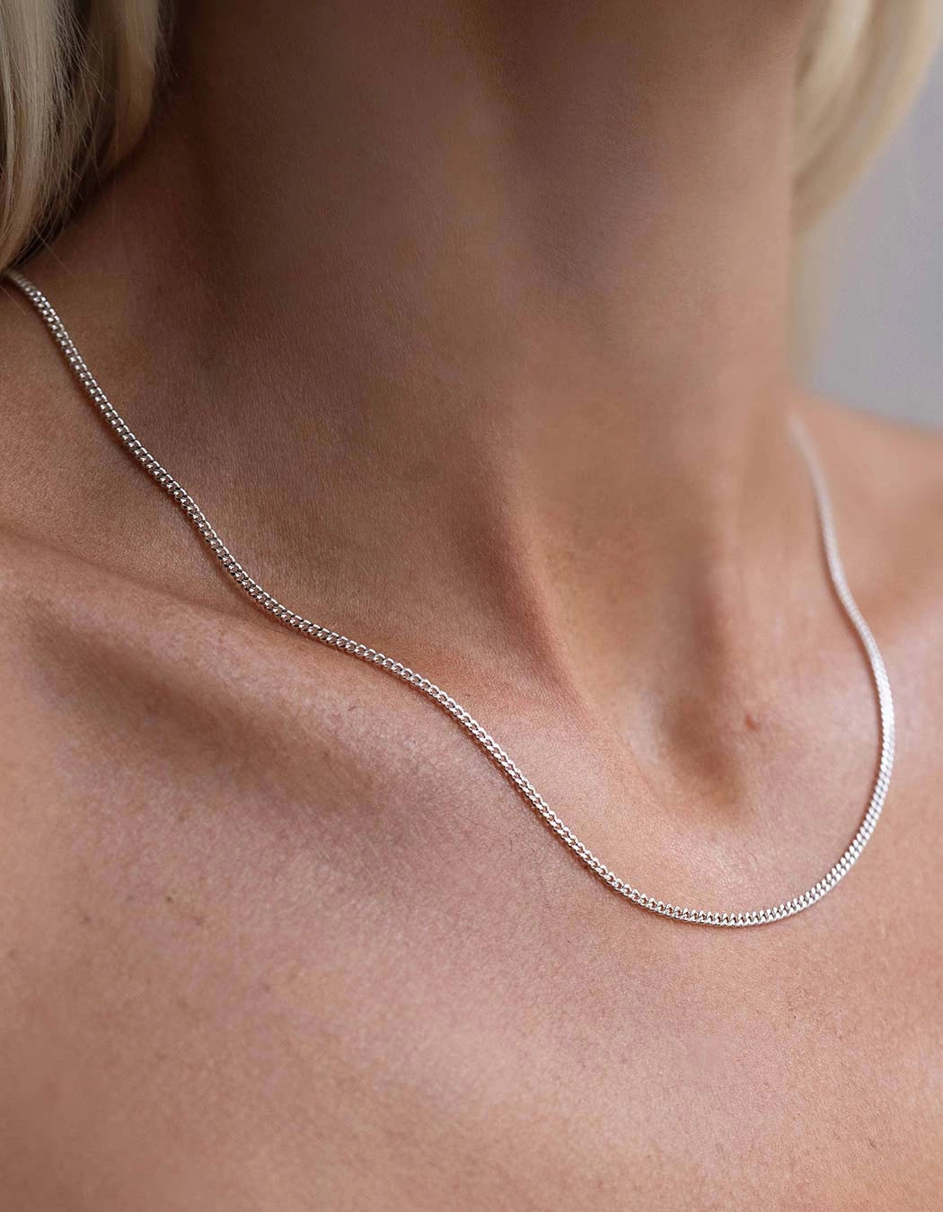 A delicate and flat chain that fits our pendants. The chain is 42 cm long with a 5 cm extension for easy adjustment. Note: Not compatible with our charms.