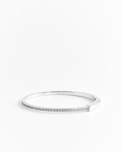 A sculptural bracelet with a flowing design that gently folds into itself. Its stiff construction ensures it rests securely on the wrist, creating a modern and refined look perfect for both everyday wear and special occasions.