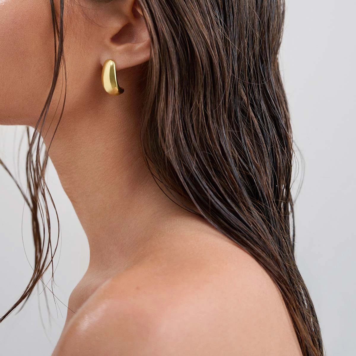 Elevate your outfit with our Curved Earrings. These prominent earrings, with their striking shape and high-gloss surface, provide an elegant touch whether you wear them for special occasions or in your everyday life. They come in an ANI box, which is perfect for storage. Our earrings are sealed for hygienic reasons. If the seal is broken, we cannot accept a return or exchange.