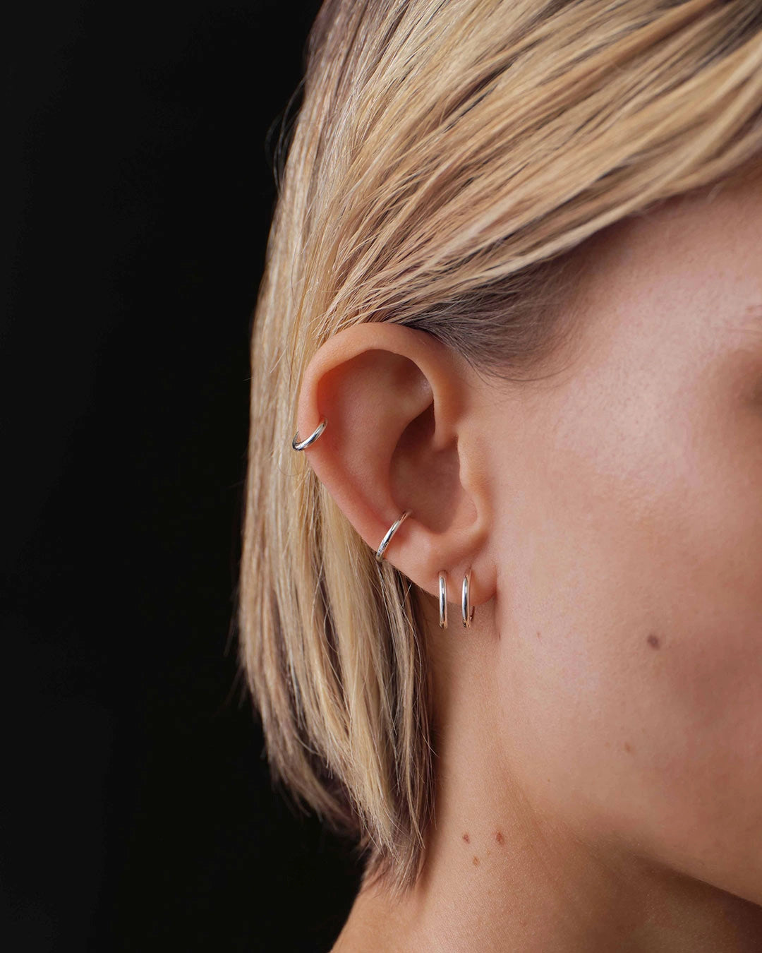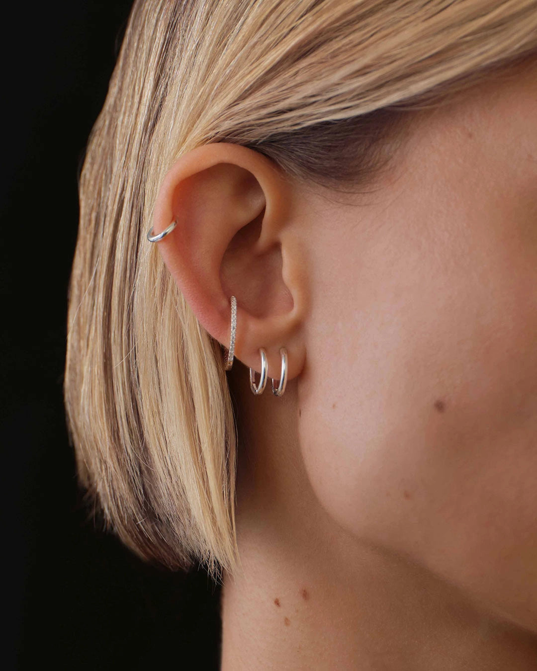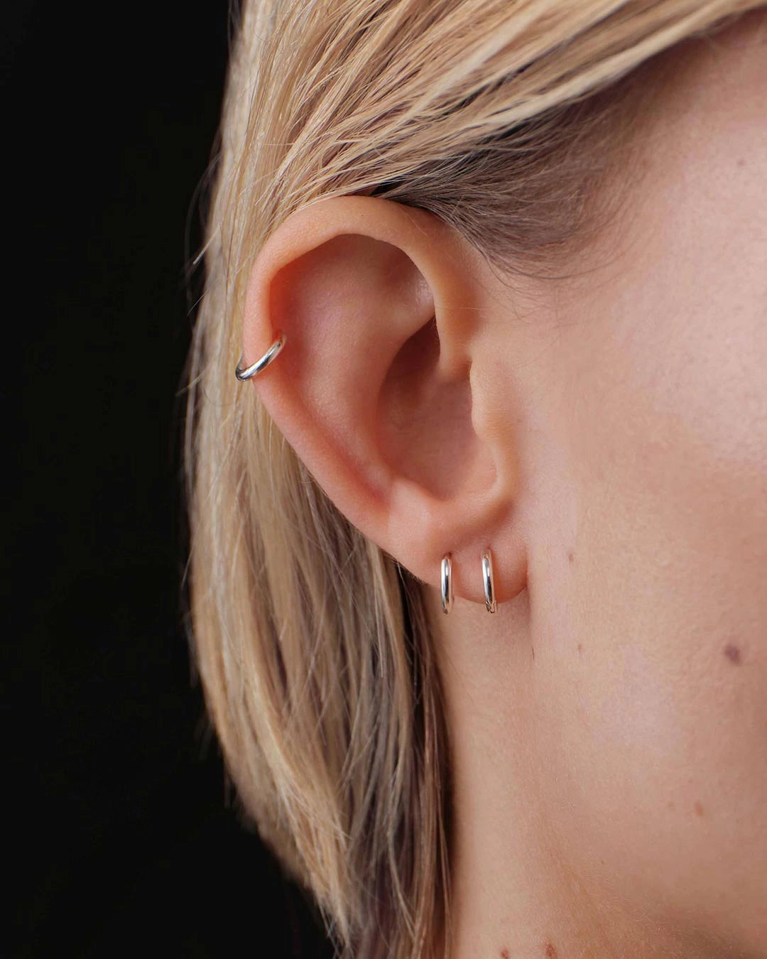 Plain Huggie Hoops, made from 925 sterling silver, feature a smooth and shiny surface that creates a simple and elegant impression. The earrings are sold in pairs and come in sizes 6 and 9 mm.
