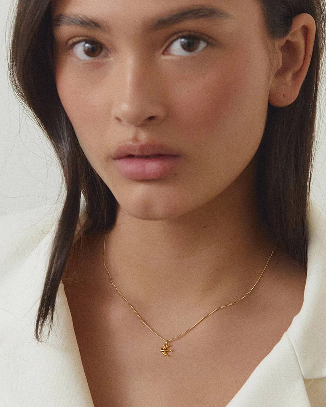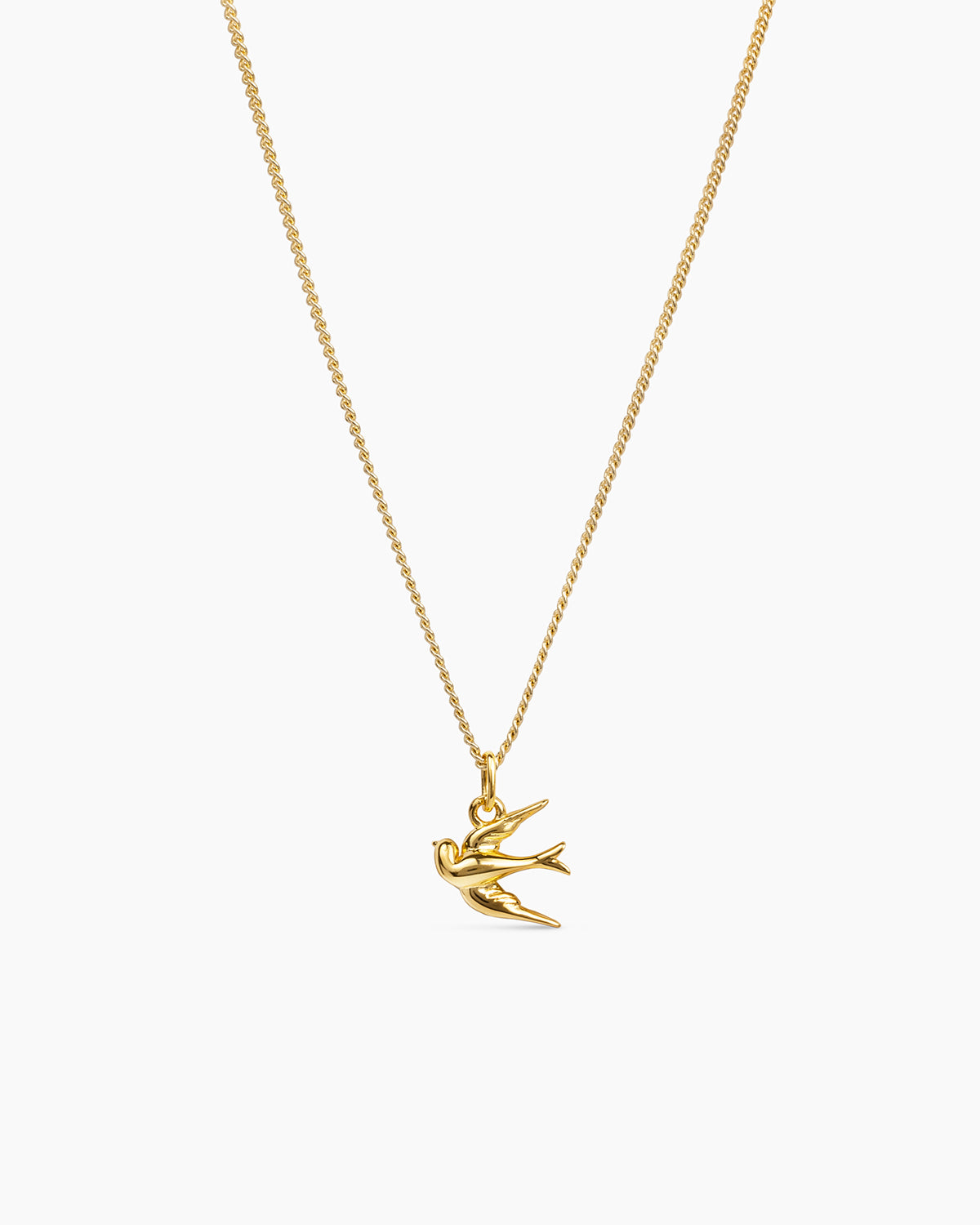 Swallow Necklace with a bird-shaped charm and a chain of your choice. The charm is detachable, perfect for creating a personalized look.